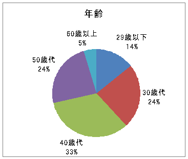 年齢:40歳代が一番多く、30歳代、50歳代が並ぶ |