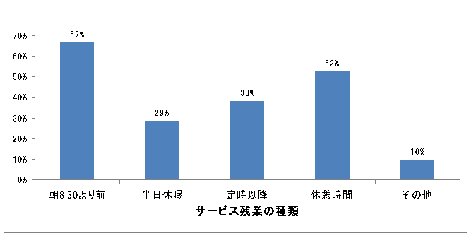 「朝8:30よりも前の時間が実質的にサービス残業(早出)になっている」が1位(67%)