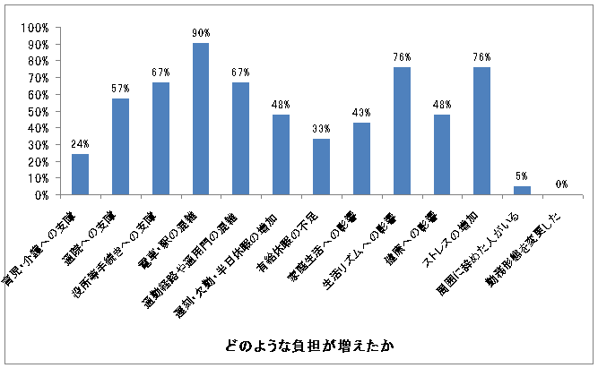 | 問4 フレックスの休止で、どのような負担が増えましたか。すべて上げてください。
