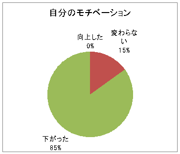 自分のモチベーションについて、「変わらない」15%、「下がった」85%。