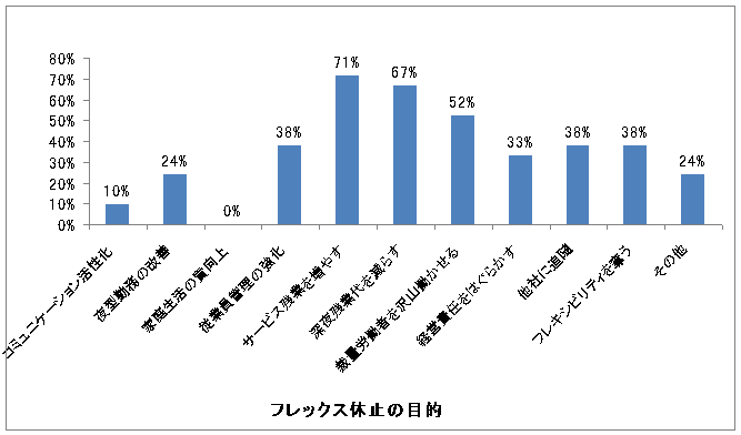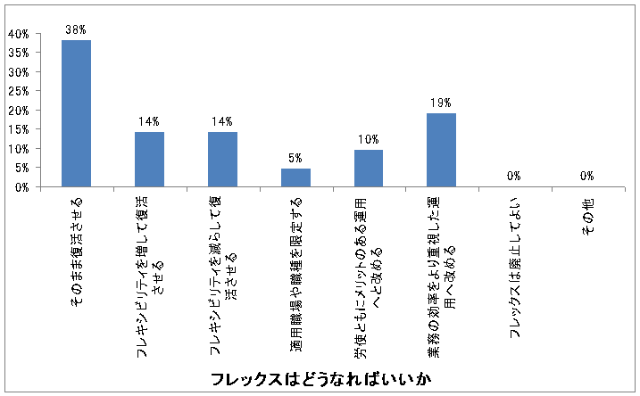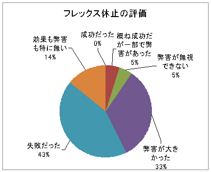 この調査項目でもフレックスタイム休止は、業務の点からも「誤り」であったことを示している。 |