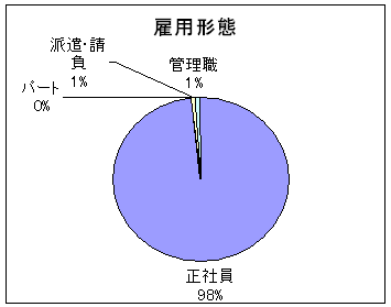 正社員が98% 回答者の分布は、正規社員が