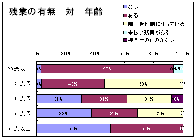 長時間残業の中心は20歳代、30歳代