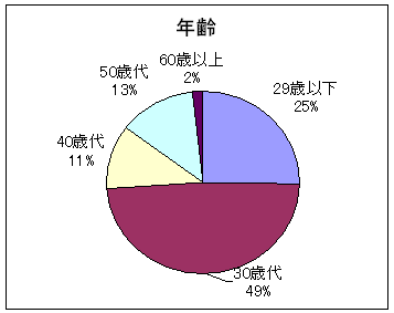 49%ともっとも多い。次に29歳以下が25%と続き、若年層の関心の高さが際だつ結果となった。 |