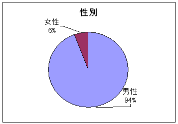 男女比は、男性94%、女性6%と男性の方が圧倒的に多い。昨年は2年ぶりに女性の回答UPが見られたが、再び減少に転じた。 |