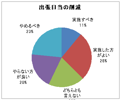 出張手当半減の会社提案に怒り心頭です。出張のハードさ、辛さを分からない人が提案したのでしょう。むしろ、出張手当の倍増を要求します。 (50歳代