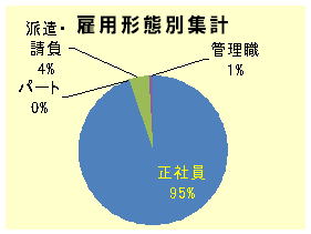 95%と圧倒的に多く、昨年比6%アップ。管理職、派遣・請負ともに減少。