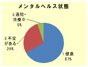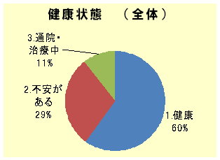 「健康」が割を占めているが、「不安がある」28%、「通院・治療中」5%。と非常に心配な状況と判断せざるを得ない。