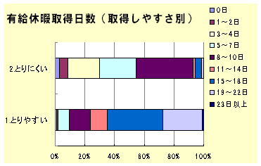 自由意見:休暇を推奨から義務化にする。取得休暇日数がある程度を割り込んでいる「職場」に改善案を出させて個人に取得し易い雰囲気、上司に作らなければならない思想を作る。5月、8月、12月の休暇を伸ばして自動的に消化するよう仕向ける。あじさい休暇とかもみじ休暇とかあるが、何の効力も持たないのでこの段階での残り休暇数からある程度を義務的に消化させる。取得が難しいという回答に対しては取得計画を出させ、実行されない場合は部門長の責任を問うぐらいでないと何も変わらないと考える。諸悪の元凶は同じ会社の中でさえきつい部署とそうでない部署の格差が大きすぎることにある。