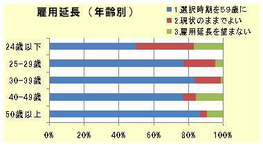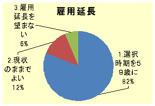 Q11:雇用延長制度は、国が年金支給開始年齢を65歳に引き上げたことの代替として整備したもの。よって全員が無条件に延長でき、かつ60歳までの賃金等の条件は変わらないものでなければならない。56歳から賃金引下げを図るなぞ、火事場の泥棒とおんなじ醜さである。