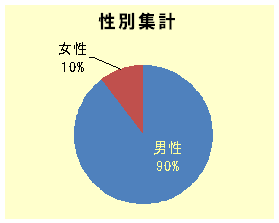 90%、女性10%と男性の方が圧倒的に多い。昨年は女性が増加し、バランスの改善がみられたが、また戻ってしまった。もう少し、女性の回答数がほしいところである。 |