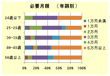 質問2.あなたの生活には月額であといくら必要ですか。 |