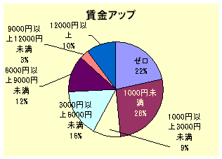 中堅クラスの賃金アップが定期昇給を含めても5000円前後というのが実態である模様。