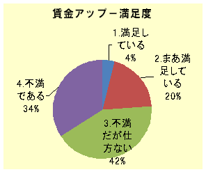 不満、仕方がないを併せて76%と不満が、満足、まあ満足を合わせた24%を大きく引き離している。