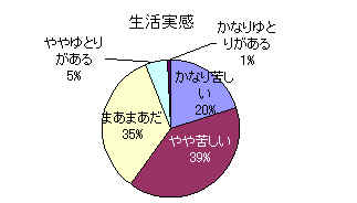生活実感では、「かなり苦しい」と「やや苦しい」を合わせると約6割が現在の生活が苦しいと訴えています。