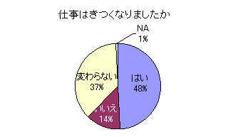 仕事も内容では、「最近仕事がきつくなった」と答えた人が半数近くにのぼります。これは利益を上げるためののリストラ人員削減の過酷さと、不当性を示しています。必要な人員を確保させること、労働強化をあおる成果主義賃金などを、職場の声を聞いて見直すことが求められています。