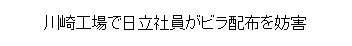 ビラ配布の途中(8時頃)、同敷地内にある日立の社員が工場内から出てきて、ひきつった顔つきで、「ここ(門前)は会社の構内だから出ろ‥‥ビラをまいたり、写真を撮ったり、何をしているのですか‥‥日立の組合員もいるんですから‥‥」など、支離滅裂なことを言って抗議?してきました。