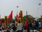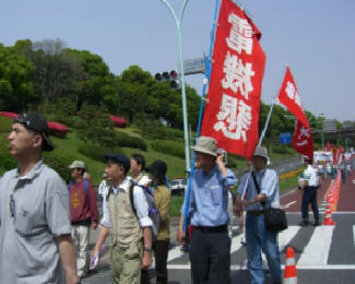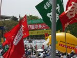 デモは新宿、明治公園、恵比寿の3コースに分かれて出発。NEC&関連労働者ネットワークのメンバは電機懇談会の仲間と一緒に新宿コースへ参加しました。参加者は、「憲法9条を守ろう!」「若者に仕事と希望を!」「消費税増税反対!」「安全な牛肉を!偽牛はおことわり」など思いおもいのプラカードやゼッケン、横断幕をもって、元気よくデモ行進しました。