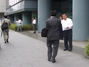 9日、NECマイクロシステム中部事業所が所在するNEC中部ビルの社前で、ELICNEC5月1号・2号を、地元の愛知電機懇談会からの応援を受けて配布しました。 NEC中部ビルはNEC関連15社が入っており、NECマイクロシステム中部事業所はその9階にあります。 雨上がりの爽やかな天気のなかで、新入社員らしき人からは「おはようございます」との元気良い挨拶が返ってきたり、突然のビラ配布に驚きの様子が微妙に感じられたり、新鮮な気分でビラを手渡すことができました。 会社のビラと思われた人もいたようでしたが、9割をこえる方がビラを受け取ってく れ、用意したビラは8時30分に撒ききりました。
