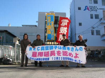 NEC真空硝子は鈴木さんの雇用延長を認めよ! 労働審判申し立て&宣伝行動 第4弾 |